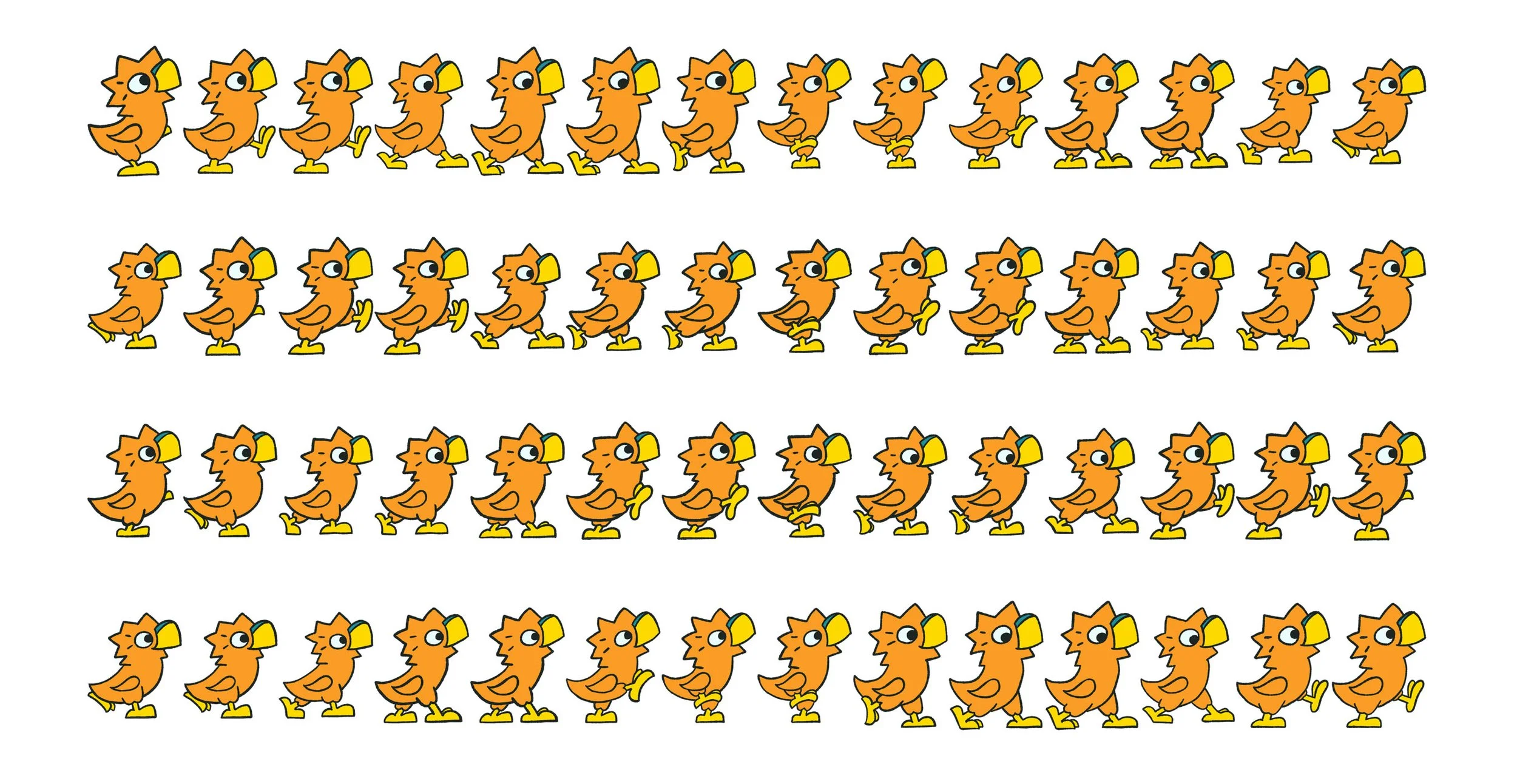 A walk cycle animation of my goofy little feathered friend, “Pio”